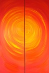 2011Abstract 2-luik van olieverf en gewerkt met verdikkingspasta. De doeken zijn aan elkaar bevestigt met aluminium buisjes.